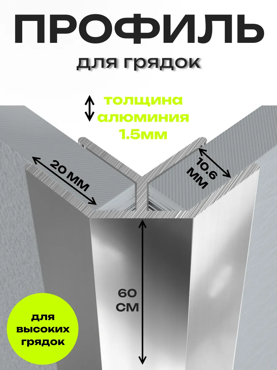 Совершенно новая инновационная форма углового профиля для сборки грядок из шифера! Профиль рассчитан на толщину материала (шифера) не более 10мм! Данный профиль разработан таким образом, чтобы сборка грядки была максимальна проста и удобна покупателям. Глубокие пазы крепко и надежно удерживают шиферные полосы. Угловой профиль служит для соединения углов грядки. Сборка грядки занимает не более 30 минут и не требует специальных инструментов. Крепление полос саморезами не требуется. Длина профиля 60см, что позволяет использовать его для сборки высоких грядок.