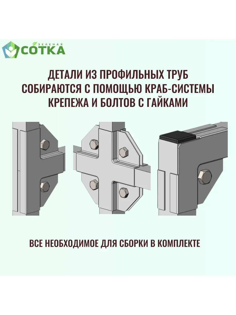 Длина основной опоры 1 метр. Каркас опоры изготовлен из оцинкованной профильной стальной трубы и состоит из двух горизонтальных перекладин, двух составных стоек, двух ограничителей и двух колов (для заглубления опоры в землю). Комплект краб-соединений для сборки каркаса, крепеж и заглушки. Все крепежные элементы имеют антикоррозийное покрытие.